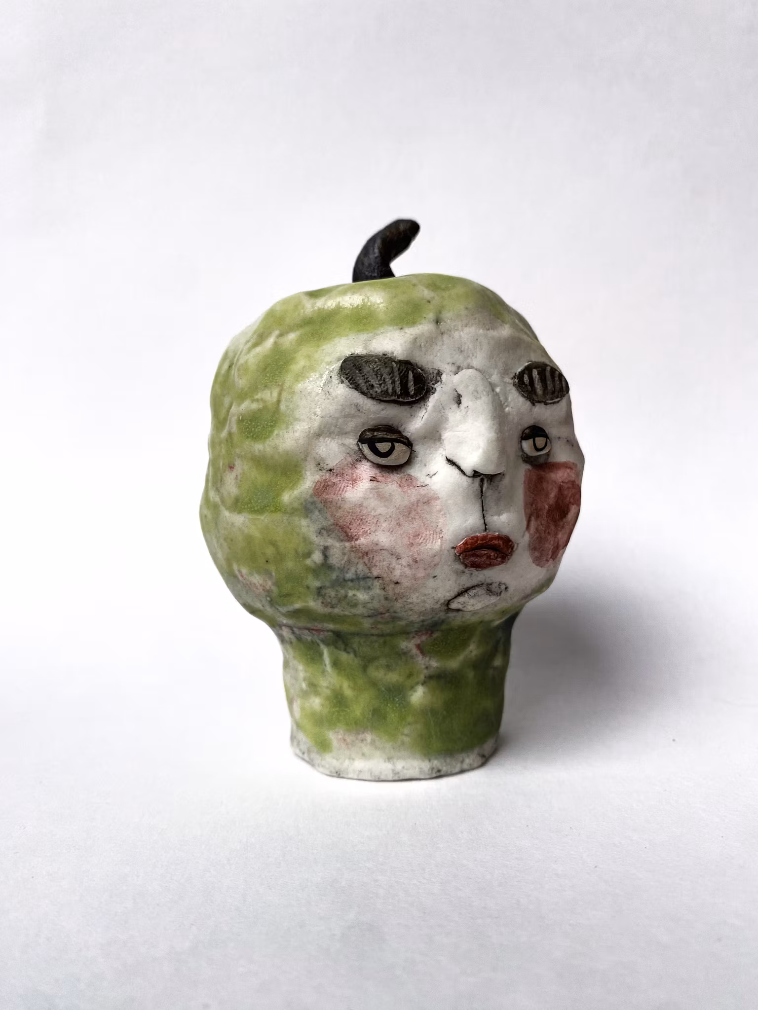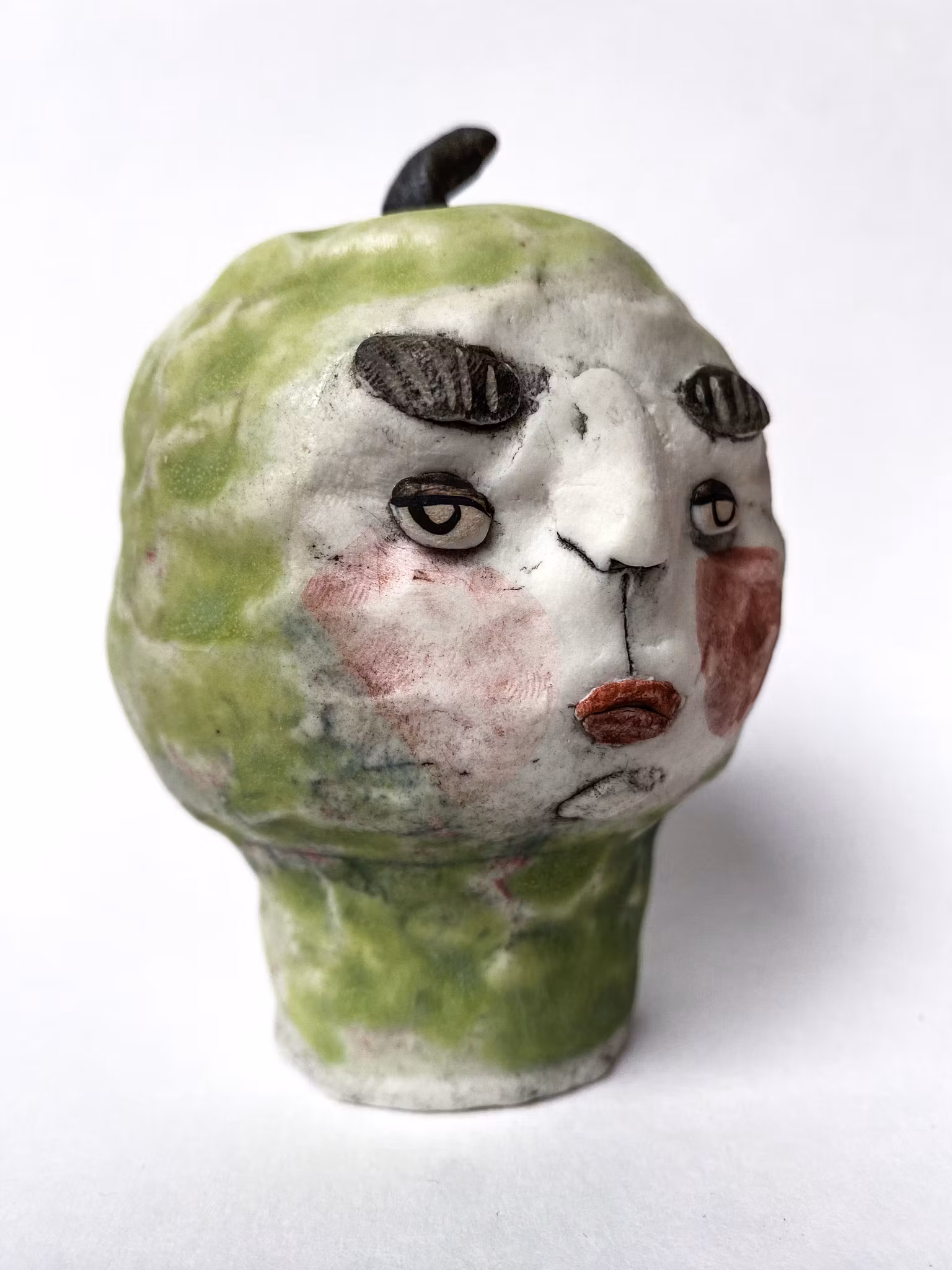 Skulpterad varelse i porslinslera och glasyr.