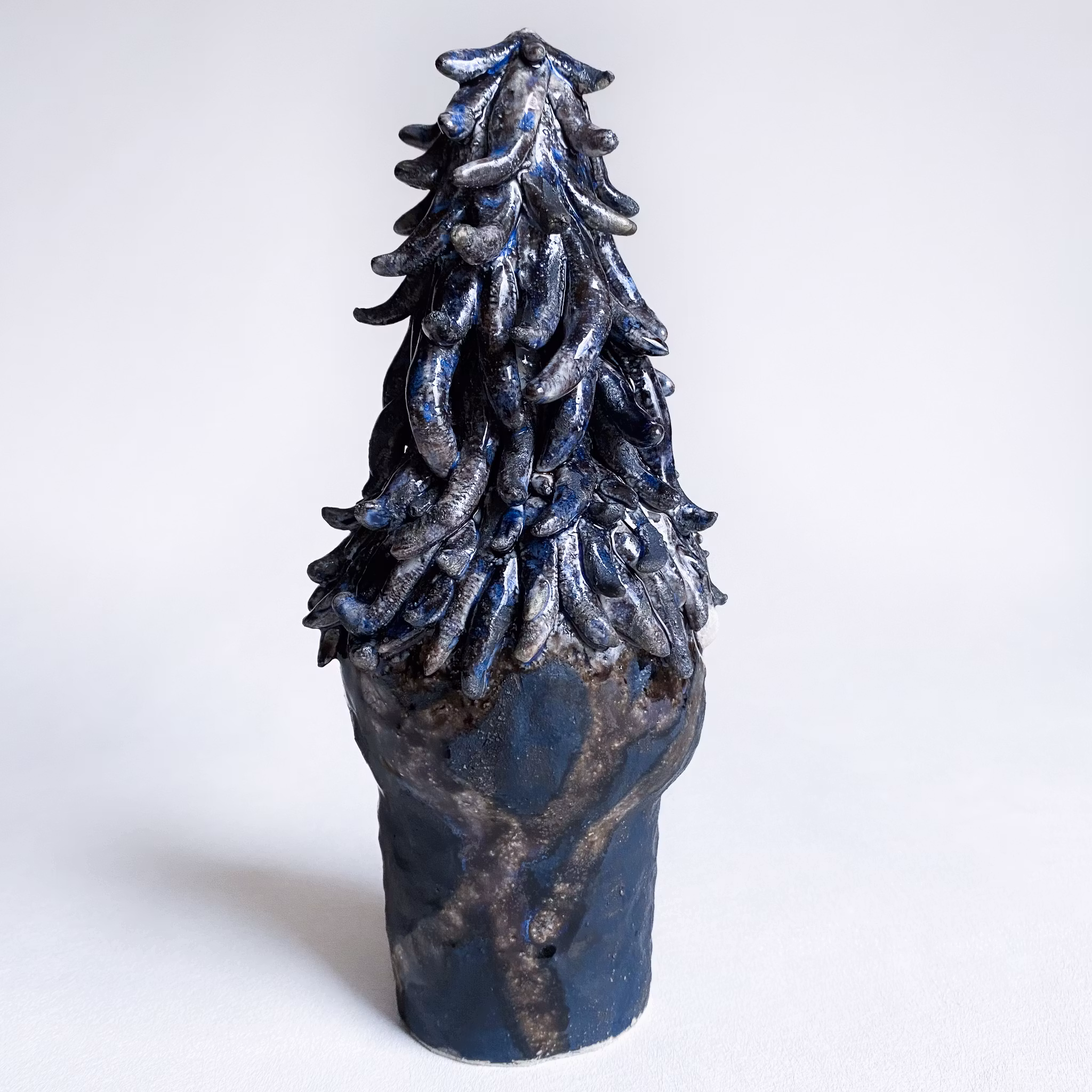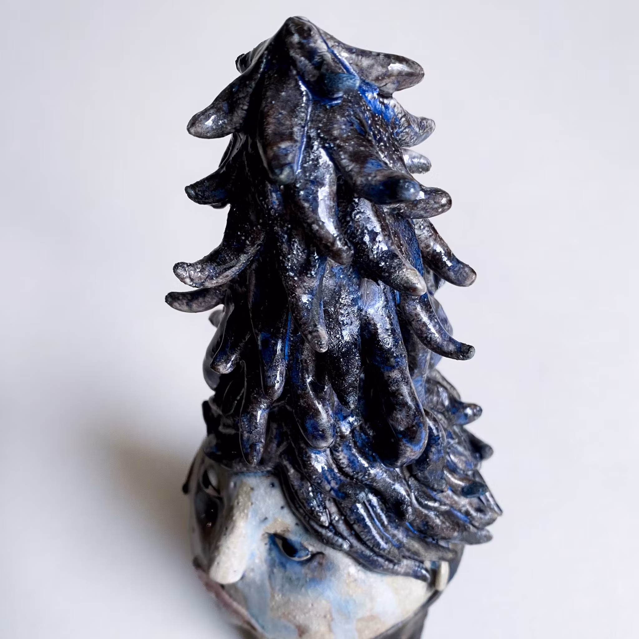 Glasyrerna blandas från grunden i verkstan och handmålas med en kinesisk dekorpensel. Alla varelser härstammar från Vråskogen i Örby. I ugnens sista bränning väcks de genom ritual från kropp till levande väsen. Under natten.